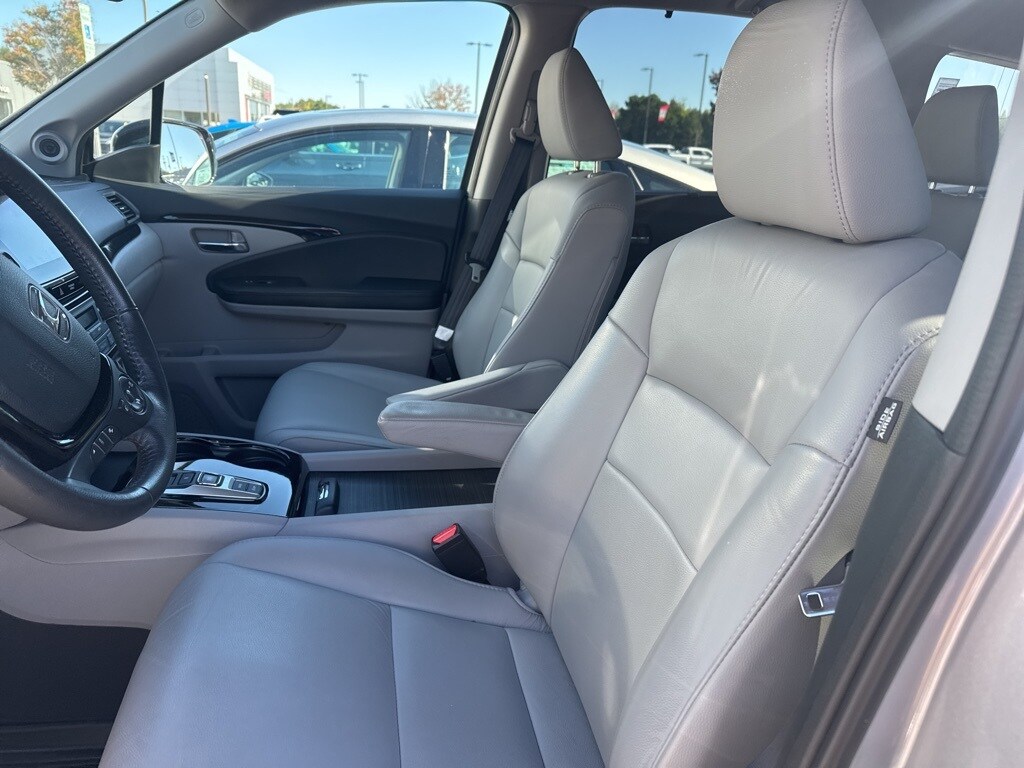 10 Speakers, 20" Alloy Wheels, 3rd row seats: split-bench, 4-Wheel Disc Brakes, 4.334 Axle Ratio, A/V remote, ABS brakes, Air Conditioning, Alloy wheels, AM/FM radio: SiriusXM, Apple CarPlay/Android Auto, Auto-dimming Rear-View mirror, Automatic temperature control, Brake assist, Bumpers: body-color, Compass, Delay-off headlights, Driver door bin, Driver vanity mirror, Dual front impact airbags, Dual front side impact airbags, Electronic Stability Control, Emergency communication system: HondaLink Assist, Exterior Parking Camera Rear, Four wheel independent suspension, Front anti-roll bar, Front Bucket Seats, Front Center Armrest, Front dual zone A/C, Front fog lights, Front reading lights, Fully automatic headlights, Garage door transmitter: HomeLink, Headphones, Heated Front Bucket Seats, Heated front seats, Honda Satellite-Linked Navigation System, Illuminated entry, Leather Shift Knob, Leather-Trimmed Seats, Low tire pressure warning, Memory seat, Navigation System, Occupant sensing airbag, Outside temperature display, Overhead airbag, Overhead console, Panic alarm, Passenger door bin, Passenger vanity mirror, Power door mirrors, Power driver seat, Power Liftgate, Power moonroof, Power passenger seat, Power steering, Power windows, Radio data system, Radio: AM/FM Premium Audio System, Rear air conditioning, Rear anti-roll bar, Rear audio controls, Rear reading lights, Rear seat center armrest, Rear window defroster, Rear window wiper, Remote keyless entry, Roof rack: rails only, Security system, SiriusXM Radio, Speed control, Speed-sensing steering, Speed-Sensitive Wipers, Split folding rear seat, Spoiler, Steering wheel mounted audio controls, Tachometer, Telescoping steering wheel, Tilt steering wheel, Traction control, Trip computer, Turn signal indicator mirrors, Variably intermittent wipers.